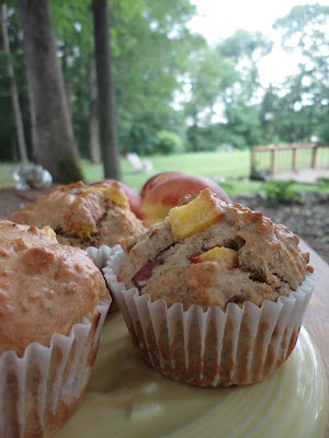 I have a base muffin recipe that I use and I add in what is in season or what I have on hand. Right now I have a bounty of peaches so I used those. This is a hearty morning muffin that is healthy and not one you would have to worry has fillers and artificial flavors. I do not add sugar to the batter but if you want it to have a sweeter taste you can add 2 tablespoons of brown sugar. It all depends on how ripe your peaches are. The more ripe the better here.