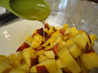 So to combat their early morning cravings I keep a few dishes on hand and at the ready. Of course baked oatmeal is a family favorite as well as fruit salads and granola. We eat a lot of this during the school year so I like to shake it up a bit and try new things. This is where the peach comes in.