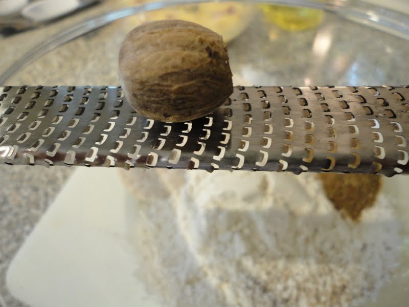 In a large bowl combine flours, flax meal, baking powder, baking soda, cinnamon, nutmeg and salt.