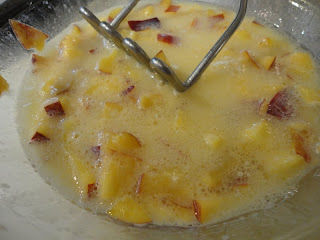Add the peach mixture. Lightly stir until moistened (batter will be lumpy).