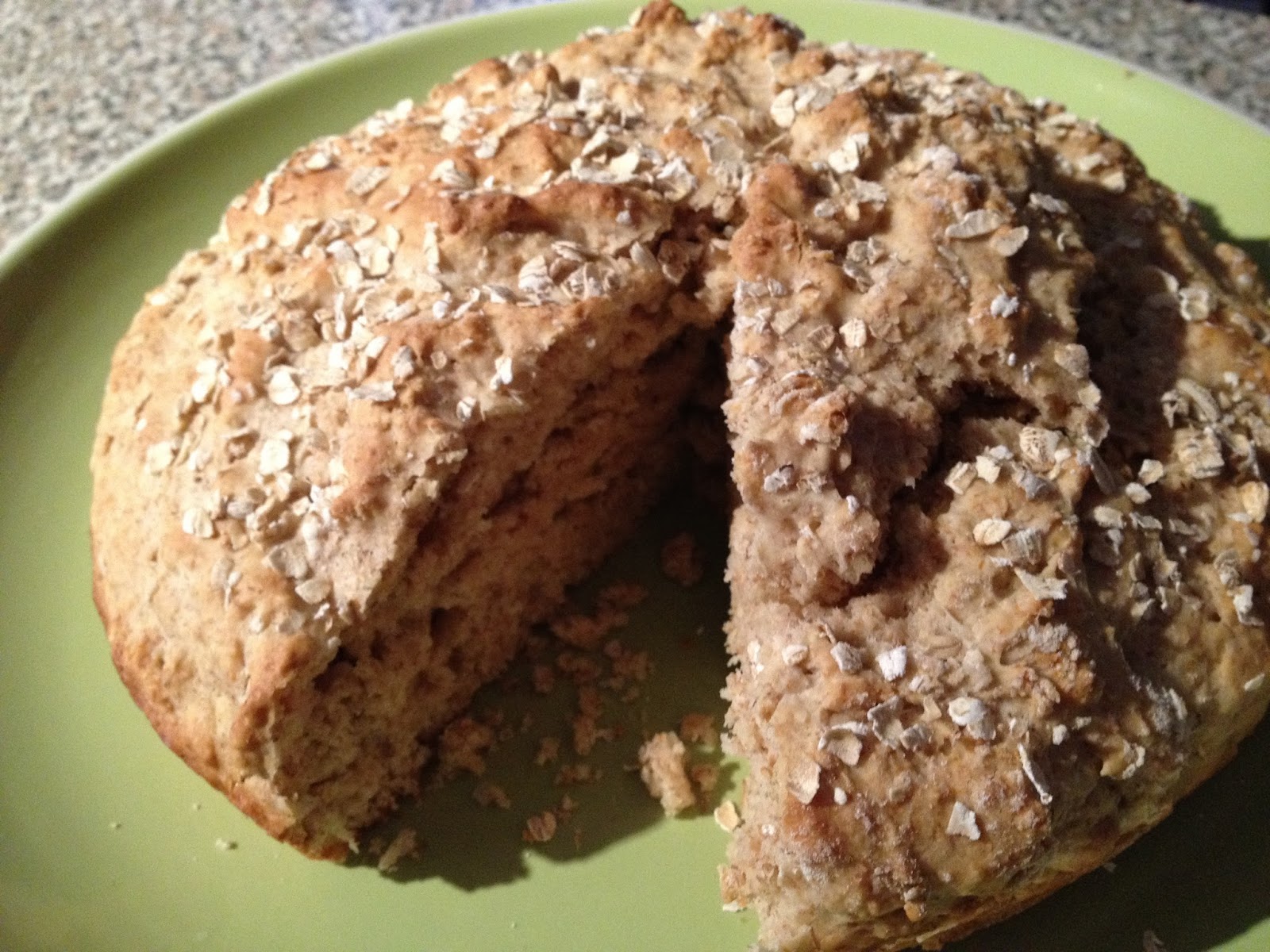 Hearty oats loaf is an easy bread recipe that I make often, because it doesn’t require yeast. It’s a great dinner accompaniment and it is great in the morning with a bit of real butter and fresh preserves. It is also super quick to throw together. Use any type of small, round baking pan to bake the bread in. I typically use an 8 or 9 inch round cake pan.