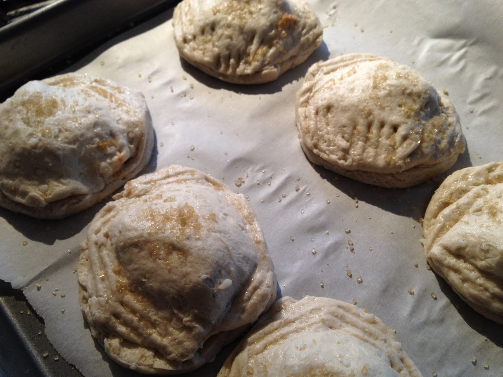 | Close each roll and using a fork crimp to seal. Sprinkle with a bit of sugar. |
