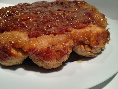 This is perfect for an Easter brunch served with fresh fruit (to balance out the syrupy bacon goodness) and a nice, strong cup of coffee.  Be careful though, you may run out.  Bacon combined with maple syrup seem to make people lose their good judgment and eat 2 or 3 biscuits each so make plenty.