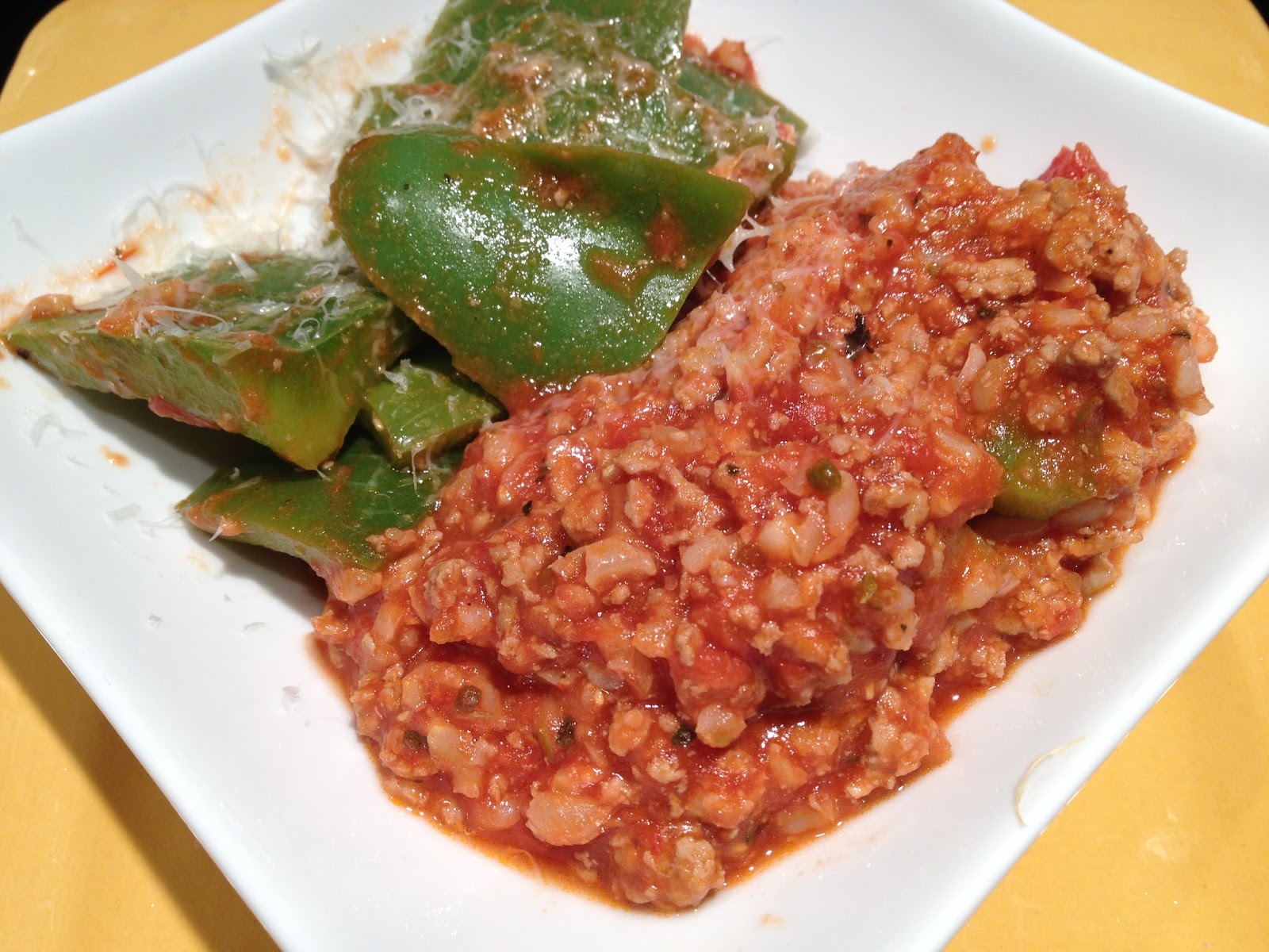 **Stuff in your favorite stuff-able veggie OR add 1 can of tomato sauce and 3 chopped green peppers. Simmer on low until green peppers are slightly tender but not mushy.