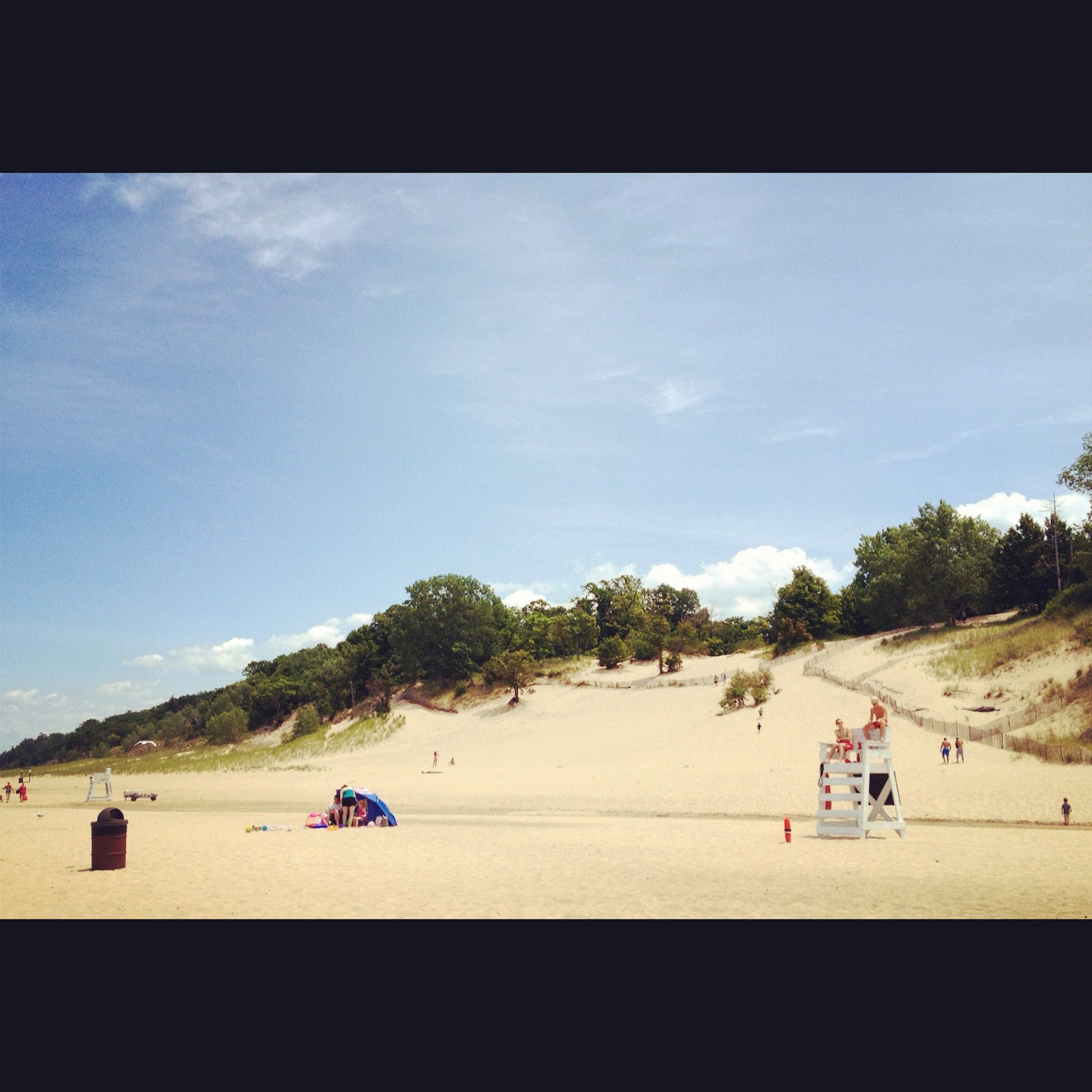 Mt Baldy, Indiana’s largest living dune, sits at over 125 feet over the water. Currently you can climb along one side to the summit, which we did. Parking for the beach here is quite a hike from the water so be prepared and do not over pack. It is an interesting area because one minute you are in the lush woodlands of Northern Indiana then all of the sudden you walk out in the bright, blue-green sight of Lake Michigan.