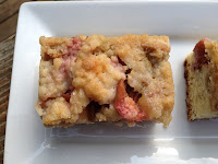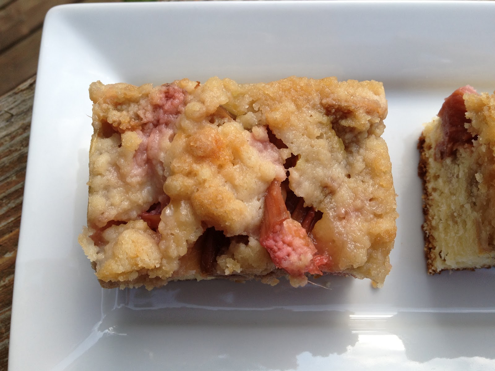 I will also be sharing the recipe to one of my husbands favorites from his childhood: Rhubarb Buckle Bars!