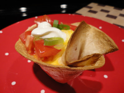 6. Fill each spot evenly with beaten egg blended with milk and seasonings.